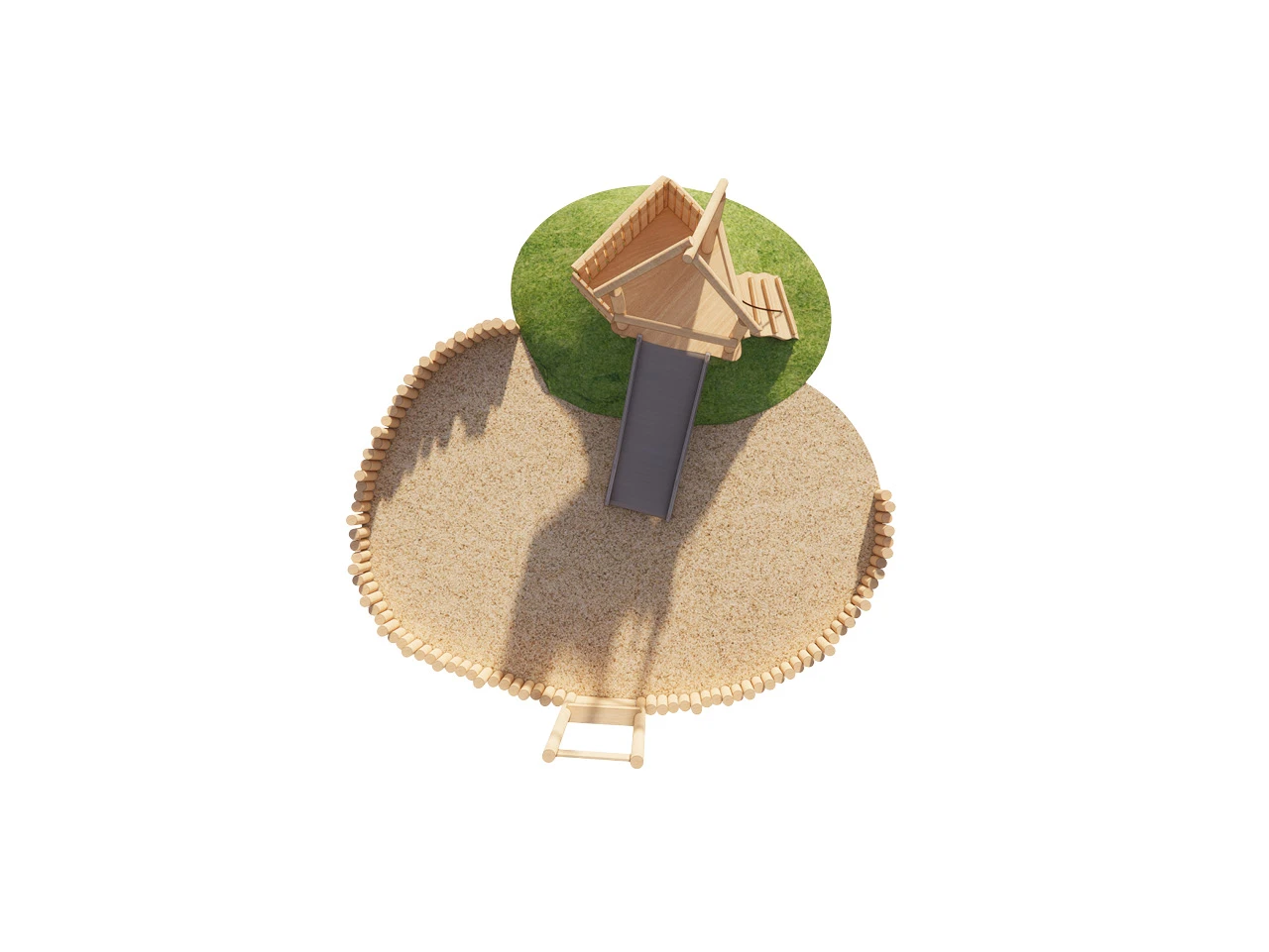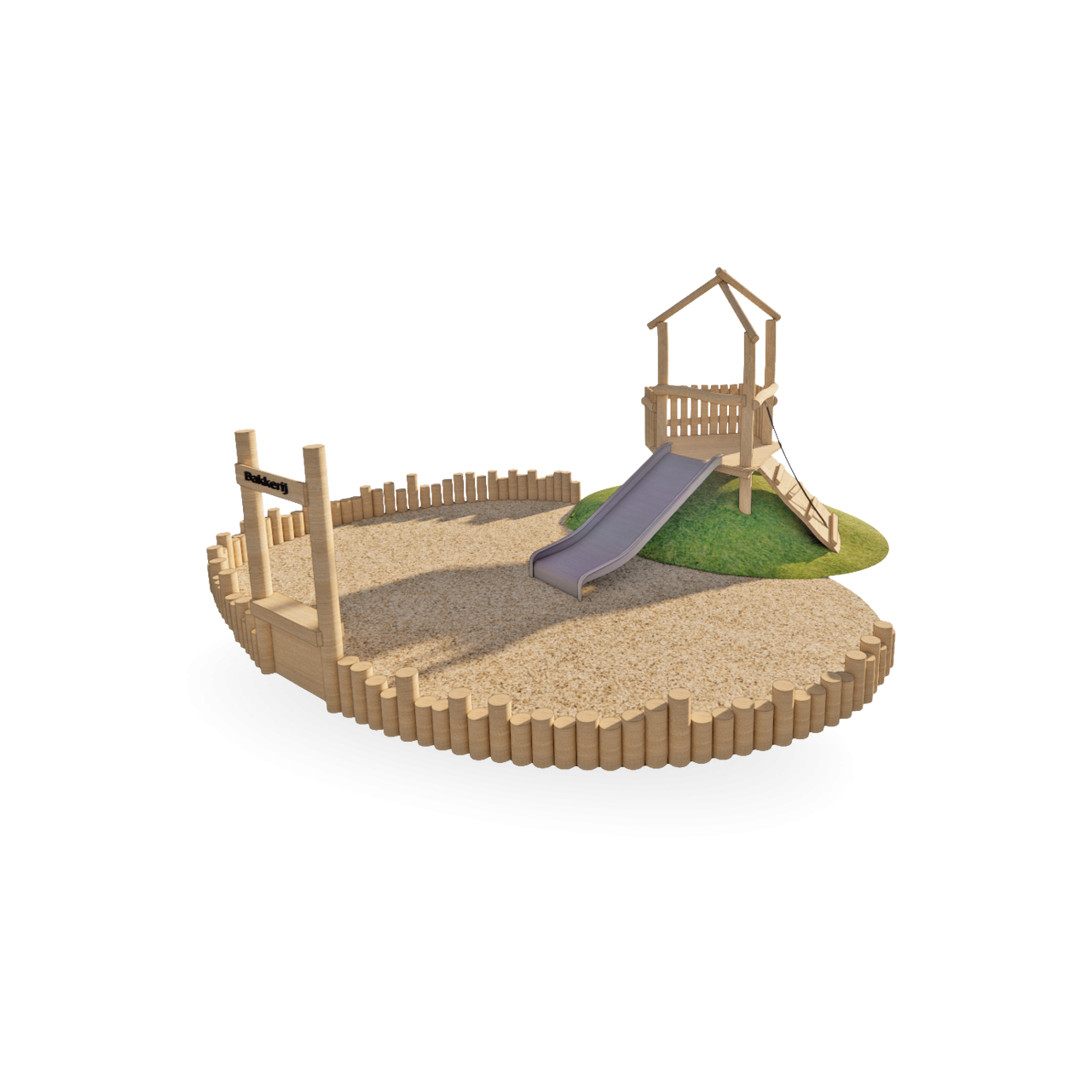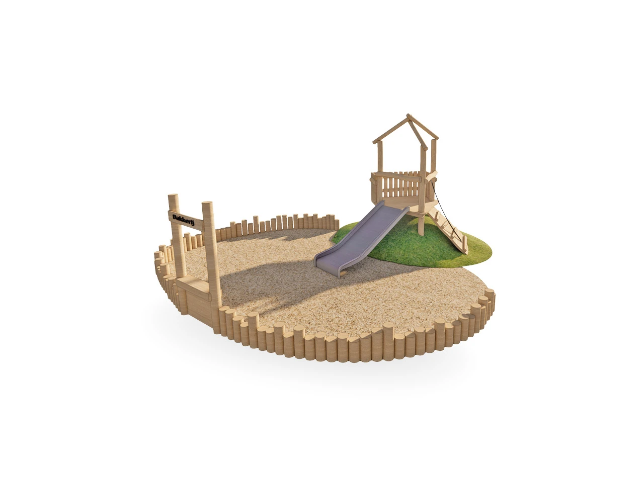 Combinatie van glijden en speelse moteriek. Rollebol nodigt uit tot samen glijden, klimmen en spelen. Een natuurlijke speelplek waar beweging, zand en plezier elkaar vinden.