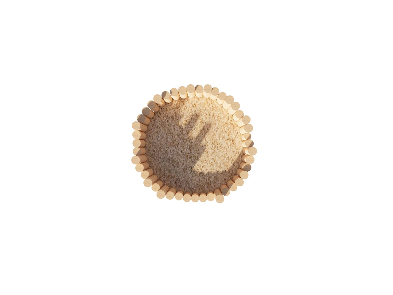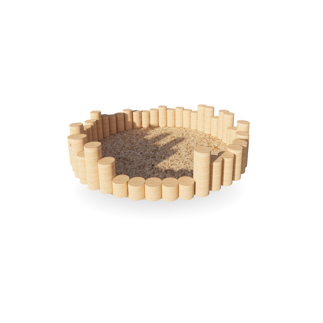 Eenvoudig en afgeschermd. Een zandbak met robuuste houten palen die uitnodigt tot bouwen, graven en ontdekken. Gewoon lekker buitenspelen.