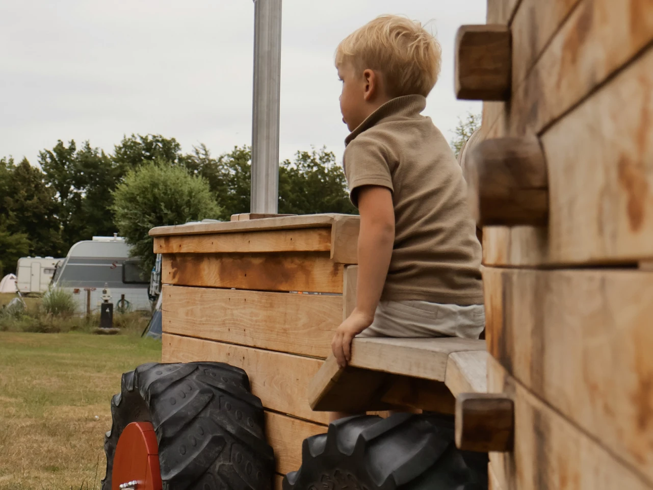 Op minicamping ’t Boerenerf in Woudenberg staatn verschillende speeltoestellen die uitnodigen tot avontuur. Een stoer, groot houten speeltoestel, tipitent, trekker met glijbaan en een duoschommel. Ontworpen in de sfeer van het boerenleven.