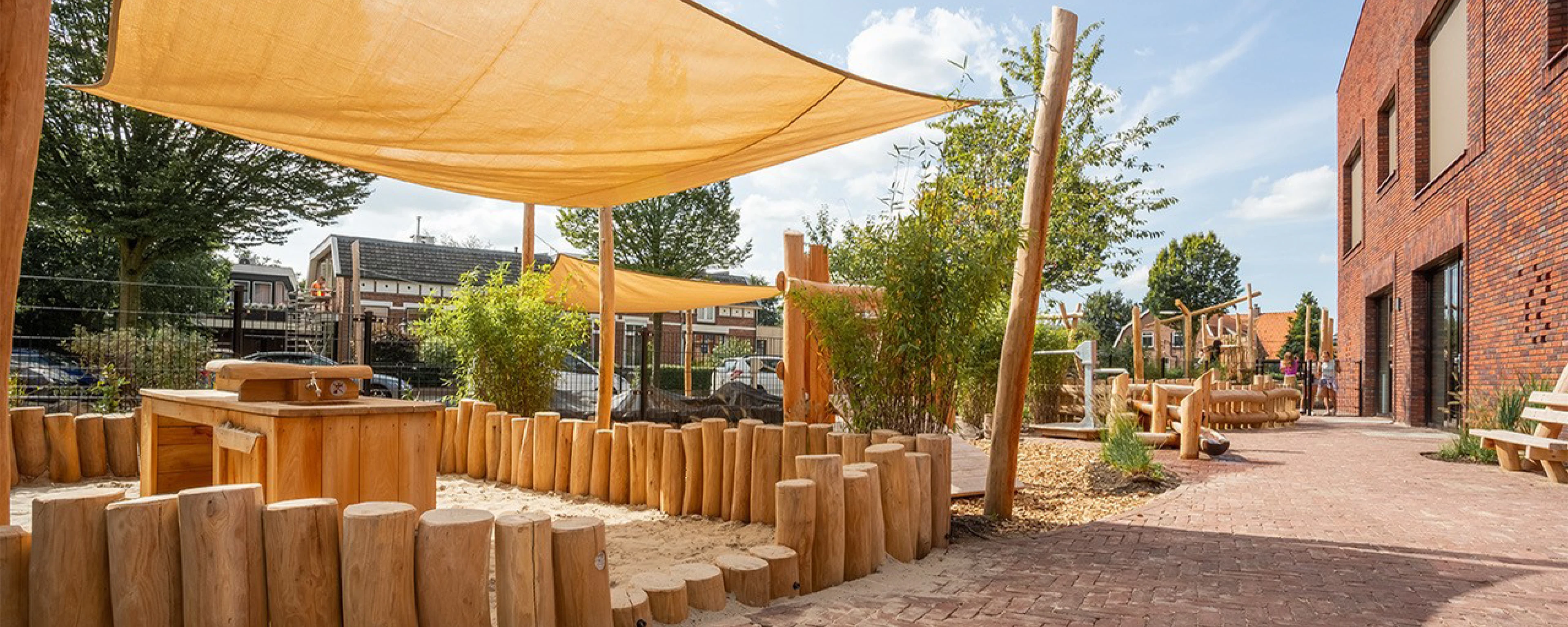 Voor RB natuurlijk buiten uit Houten hebben wij voor de Van Harte School de Robinia houten speeltoestellen, het meubilair en schaduwdoeken geleverd. Samen vormen ze een natuurlijke en duurzame basis voor het nieuwe schoolplein — een plek waar kinderen kunnen bewegen, ontdekken en samenspelen. Het eindresultaat is een doordachte buitenruimte waarin spelwaarde, stijl en kwaliteit hand in hand gaan.